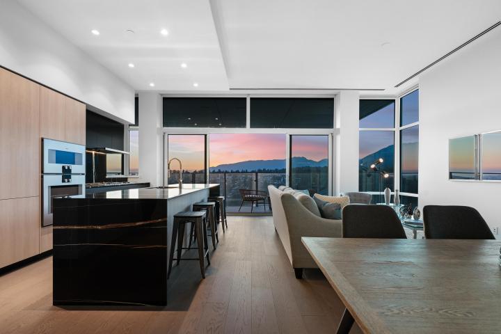 The PENTHOUSE at APEX, the TALLEST TOWER & crown jewel of the NORTH SHORE. This extraordinary 3 BED abode w/11 ft ceilings exudes opulence & sophistication, boasting expansive floor-to-ceiling windows that offer breathtaking panoramic OCEAN, North Shore MOUNTAINS & CITY SKYLINE VIEWS. Entertain guests in a spacious living area w/ seamless indoor-outdoor flow onto your private 463 sqf covered balcony overlooking the city. Designed in collaboration by CHIL Interior Design & INFORM, this unit includes elegant smooth natural stone countertops, Gaggenau appliances, triple glazed windows & engineered hardwood throughout. Enjoy resort-like amenities at the Denna Club, including an indoor pool, jacuzzi, sauna, party room, and gym. Unit comes with two parking spots & large private storage locker.