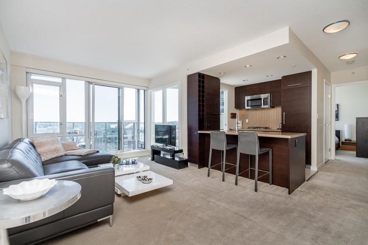 Experience urban living at its finest in this rare nearly 701 sq ft one bedroom plus den with an efficient open layout that maximizes both living and dining space. The bright den, perfect as a home office or cozy nook, enjoys sweeping city views alongside the living area’s expansive windows that frame gorgeous unobstructed views of the city and BC Place. A covered balcony offers year-round enjoyment of the vibrant skyline. The modern kitchen features a large island, built-in fridge and stainless steel appliances. Perfectly positioned in the heart of Downtown Vancouver, right next to lively Robson Street, you are steps to shopping, dining, Yaletown, the SkyTrain and more. Building amenities include 24/7 concierge, gym, steam room, yoga studio, meeting room, party room & outdoor playground.